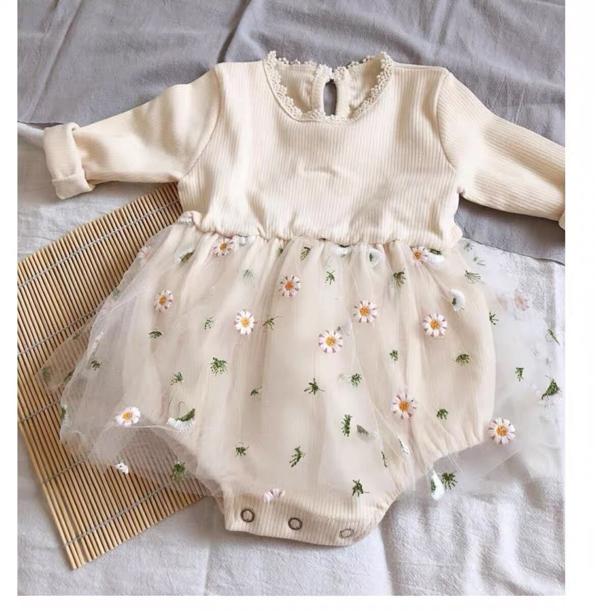 ˖ ꒰ঌニット花柄ベビーロンパース໒꒱ ˖ ࣪